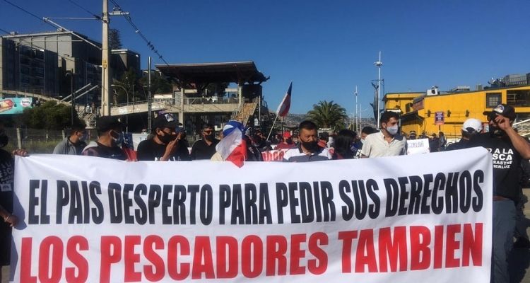 Cientos de pescadores artesanales marcharon desde Caleta Portales hasta el frontis del Congreso Nacional en Valparaíso para manifestar su apoyo a la iniciativa que busca dejar sin efecto esta normativa de 2013 y a la promulgación de una nueva ley más justa , que incluya una plataforma social para el sector.