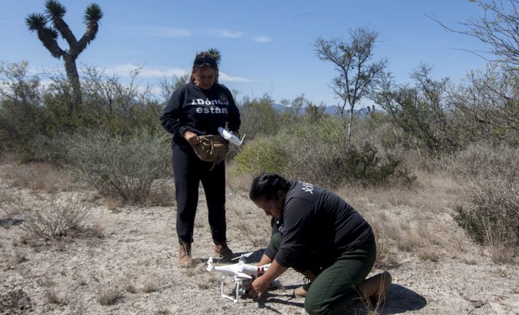 En su travesía, Hidalgo es acompañada por Angélica Orozco, voluntaria de la organización Fuerzas Unidas por Nuestros Desaparecidos en Nuevo León (FUNDENL). Además, están Eduardo Saucedo, un fiscal especial para personas desaparecidas, y agentes de policía, que vigilan mientras ellas operan el dron.