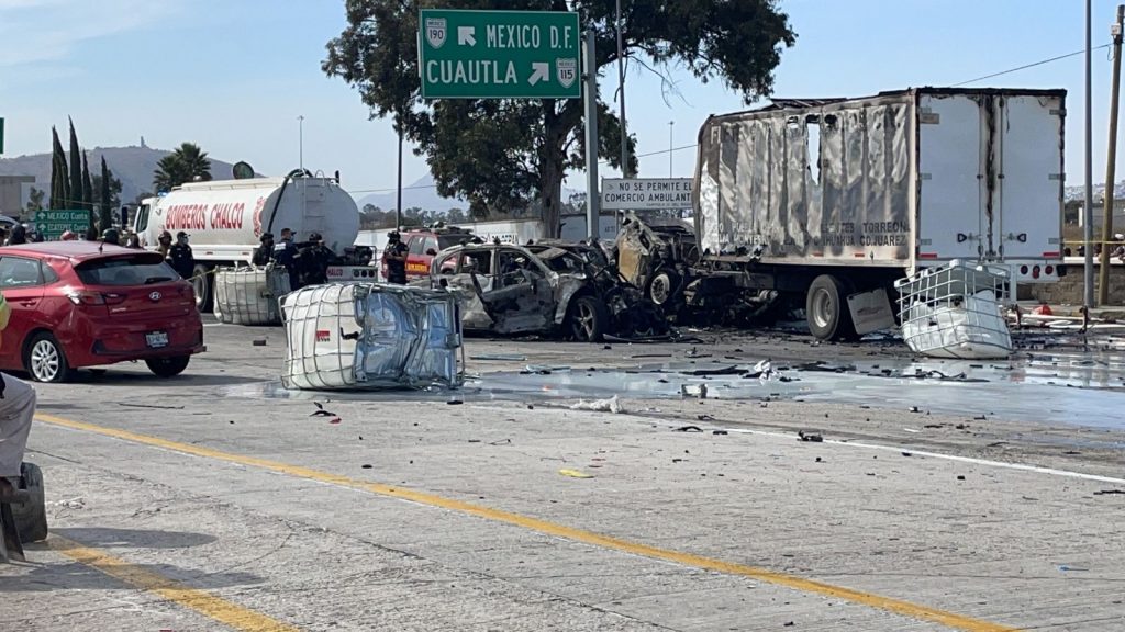 «Refieren (testigos) que al impacto el camino ya venía sin frenos, prendido. No hubo ninguna explosión, ya venía prendido el camión al momento del impacto, pues vehículos pudieron haber derramado combustible. Tenemos cinco lesionados, (trasladados) a los hospitales cercanos», dijo.