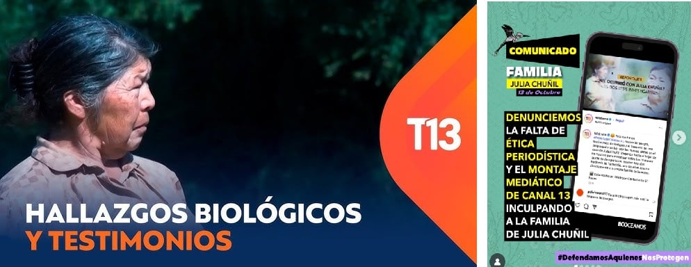 La ética periodística habría sido vulnerada de manera flagrante durante la emisión del material. El canal, propiedad del grupo Luksic, no solo expuso los rostros e identidades de personas inocentes, poniéndolas en riesgo de violencia, estigmatización y discriminación, sino que procedió a una criminalización sin pruebas de los hijos de Julia Chuñil. Esta actuación contraviene principios fundamentales del periodismo, como la presunción de inocencia, el respeto a la dignidad humana y el deber de informar con veracidad y responsabilidad.