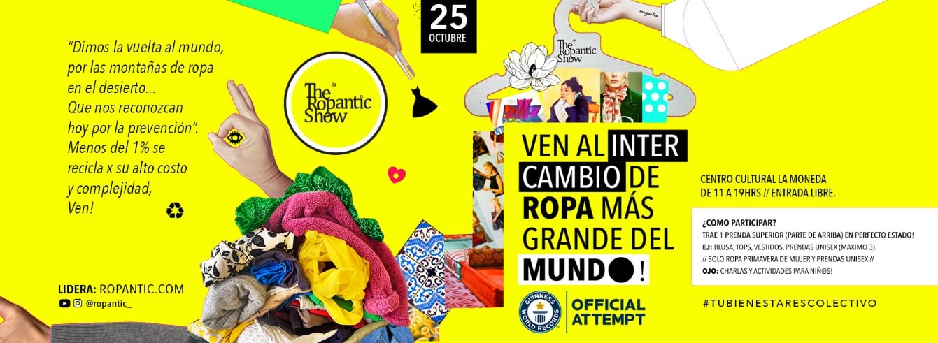 “Dimos la vuelta al mundo por las montañas de ropa en el desierto; que nos reconozcan hoy por la solución”, declara María José Gómez, fundadora de Ropantic Show, quien lidera la iniciativa. Este evento buscará establecer un titulo inicial de 2000 personas, auditado por la autoridad internacional “Guinness World Records” quien formalizo la postulación previamente.