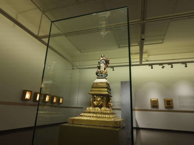 La muestra potencia el efecto lumínico de la treintena de esculturas, dispuestas en vitrinas y marcos individuales que se asemejan a pequeños altares de luz dorada. Estas piezas atesoran misterios de emociones y gestos, producto de un oficio andino ancestral.