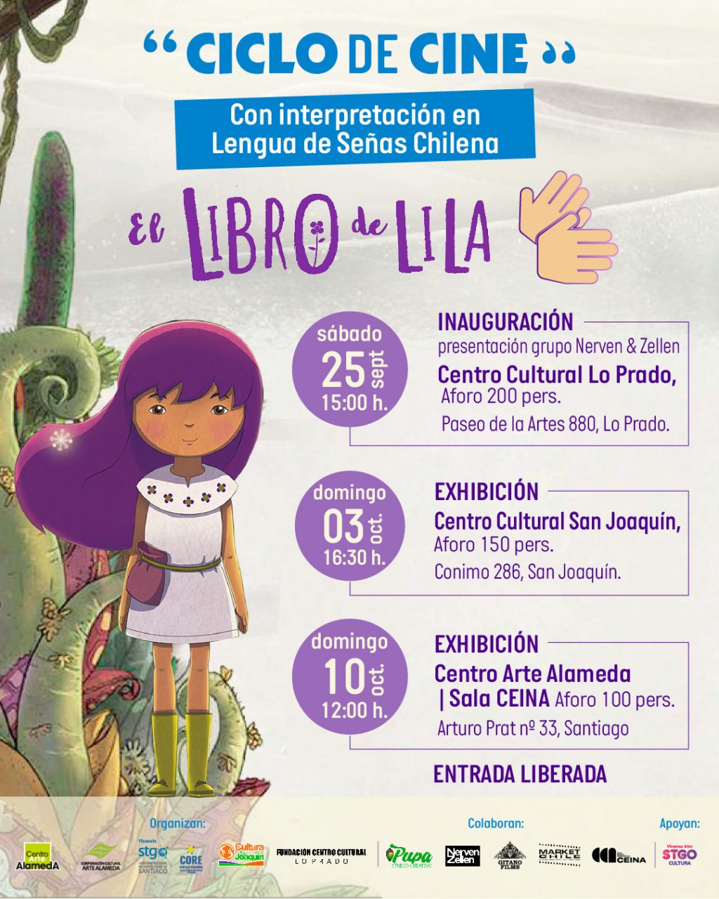 Desde el sábado 25 de septiembre comienza el Ciclo de Cine con Interpretación en Lengua de Señas Chilena y Subtitulado Descriptivo, una manera de acercar el cine a personas de la Comunidad Sorda de Chile. Una alianza entre Fundación Cultural Lo Prado, la Corporación Cultural San Joaquín, Pupa Studio Creativo, Nerven&Zellen y Centro Arte Alameda – Sala CEINA.