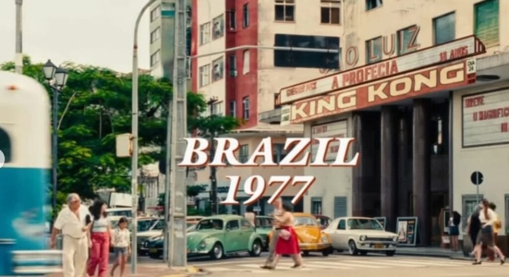 Volviendo a la idea de los cines: Mientras dentro de la sala de cine Marcelo/Armando cruza frente a la pantalla grande, vemos el trailer de “Agente secreto”, sátira de las cintas de James Bond con Jean Paul Belmondo conocida en Francia como “Le Magnifique”. El comentario es intencional: Podríamos creer que Marcelo/Armando es un agente secreto, pero a estas alturas la historia ya se han desmontado varios clichés sobre el punto y armado sobre ellos un relato vibrante y emocional.