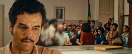 Lo doble de esta manera no solo juega a un nivel de duplicación identitaria en el mismo plano narrativo. El guion de Kleber Kleber Mendonça Filho hace algo aún más brillante. El “Tiburón” de Spielberg sale metafóricamente de la pantalla del cine y se instala en la realidad de la cinta trayendo consigo una verdad muy incómoda: una pierna “peluda” mutilada dentro de su barriga es la evidencia de que la complicidad con EE.UU. para con las dictaduras latinoamericanas en los años 70s trajo el horror, la muerte, la injusticia, el abuso de poder, la violación de derechos humanos y una negra sombra de impunidad.