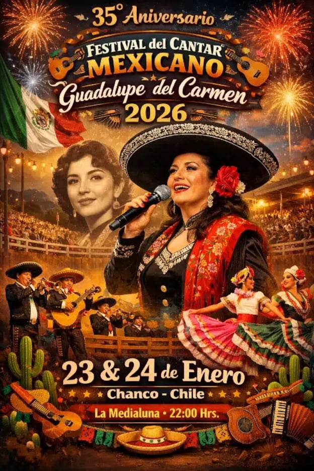 El Festival del Cantar Mexicano Guadalupe del Carmen se prepara para una edición histórica. Iniciando este 2026, el certamen de música mexicana más importante de Chile cumplirá 35 años de trayectoria, consolidándose como el evento patrimonial más relevante de la Región del Maule.