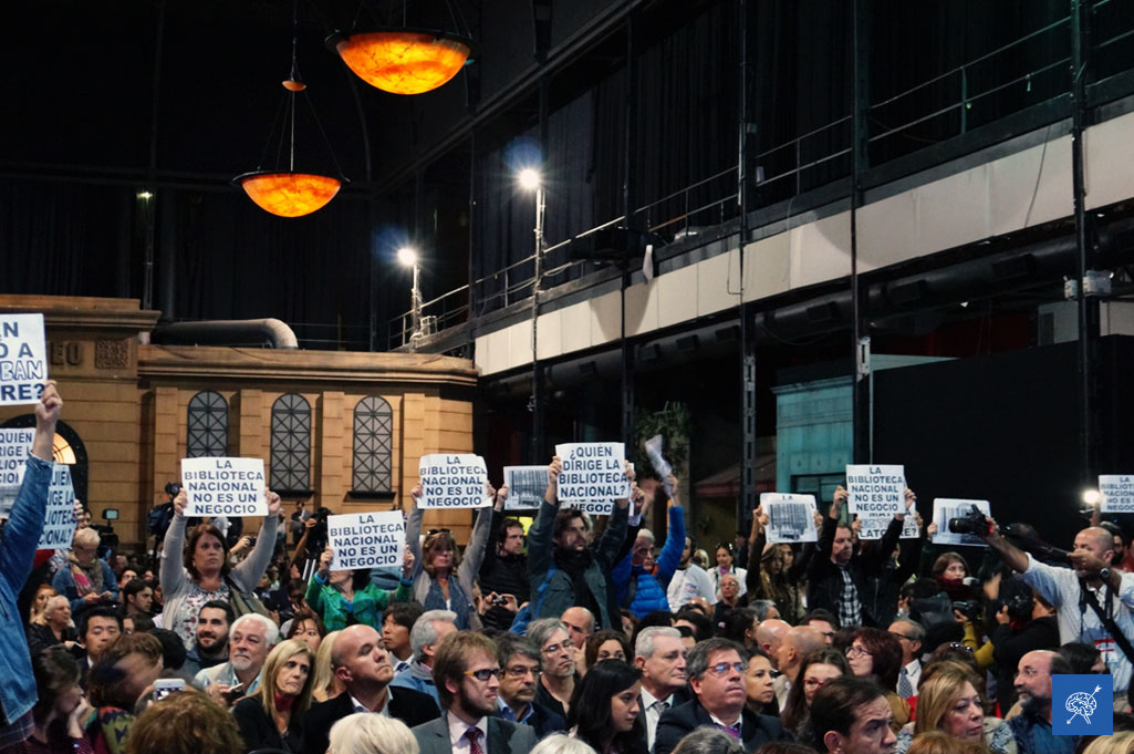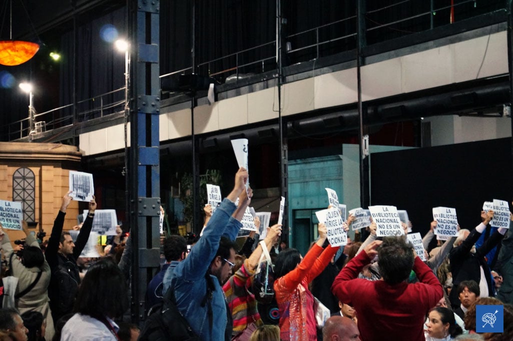 Durante la tarde-noche de ayer se llevó a cabo el acto inuaguración de la 42va Feria Internacional del Libro de la Ciudad de Buenos Aires y el principal orador fue el nuevo director de la Biblioteca Nacional. Cuando empezó su discurso, un grupo de personas se pararon y sacaron carteles alusivos a los despidos y la situación que atraviesa la institución, el cual generó el aplauso de buena parte de la sala, que se retiró junto a ellos y no terminaron de escuchar el discurso. Mirá la cobertura fotográfica de El Ciudadano a continuación.