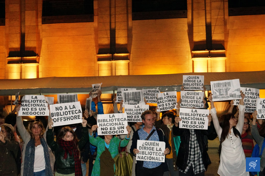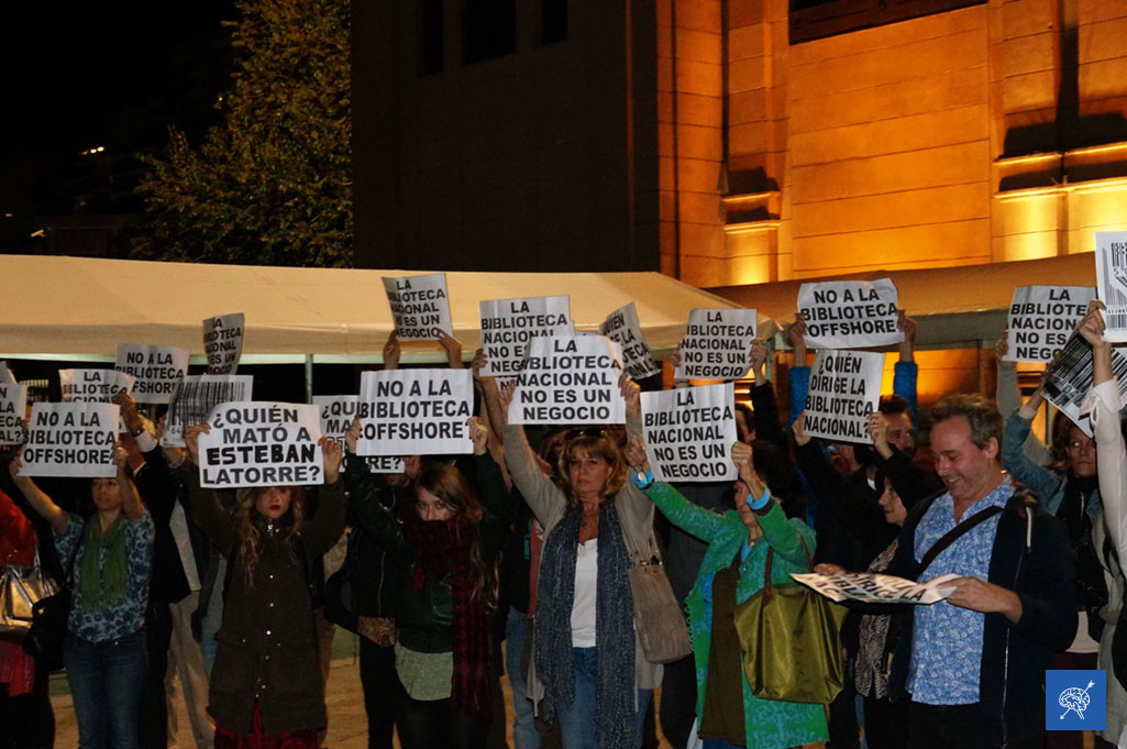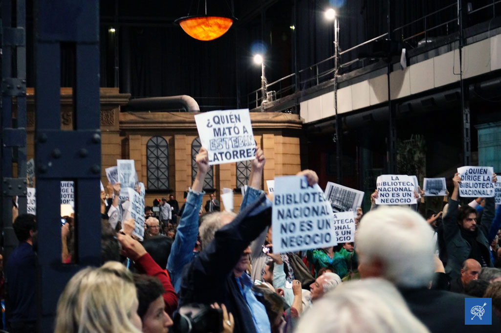 #FotoReportaje: El escrache a Alberto Manguel por parte de los despedidos de la Biblioteca Nacional