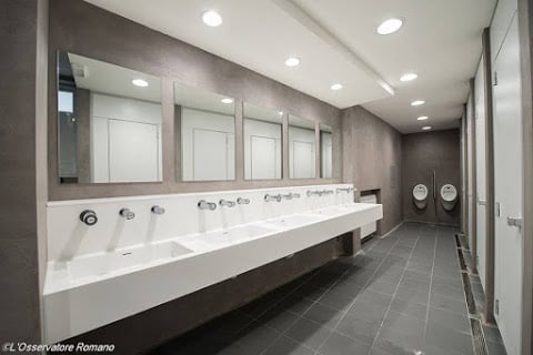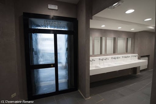 Imágenes de las mencionadas duchas del Vaticano, debajo de la columnata de Bernini, para los pobres: