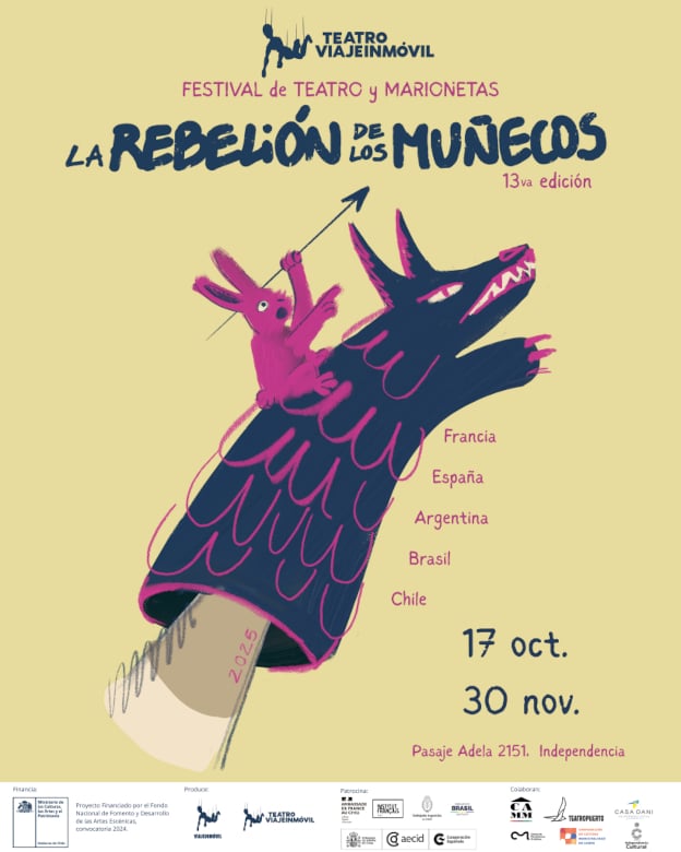 El Festival Internacional de Teatro de Animación y Marionetas “La Rebelión de los Muñecos”, invita a su 13ª versión, prometiendo un espectáculo de humor, poesía y asombro, con la participación de compañías de cinco países (Chile, Argentina, Brasil, España y Francia). Organizado por la Compañía Viajeinmóvil, el festival se desarrollará entre el 17 de octubre y el 30 de noviembre de 2025, extendiendo sus funciones a seis comunas dentro y fuera de Santiago.