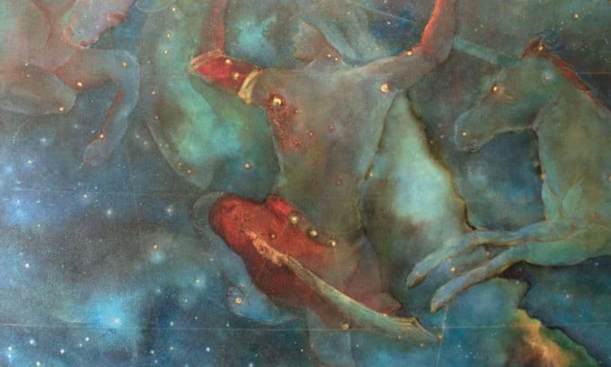 Mila Huby utiliza la antigua metáfora de los navegantes, que se guiaban por la relación entre el cielo y el mar, como punto de partida para relatar su propia travesía. Las líneas cartográficas, impresas en las costas, el mar, el desierto y el cuerpo femenino, se convierten en las cicatrices de un viaje cargado de recuerdos y significado.