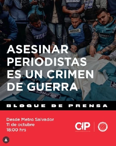 Este sábado 11 de octubre a las 18:00 horas, marcharemos en Santiago de Chile [desde la estación Salvador del Metro] en el Bloque de Periodistas por Palestina, para honrar a nuestros colegas asesinados, exigir justicia y defender el derecho de todos los pueblos a ser informados.