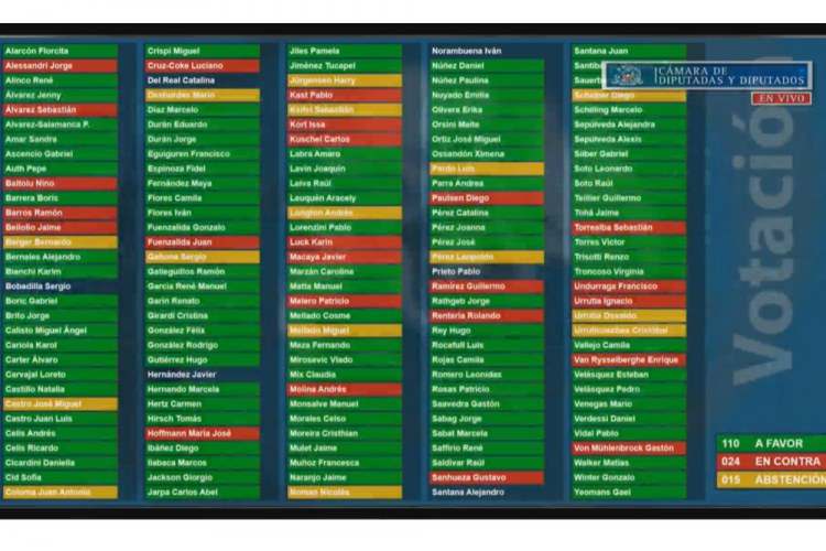 Por 110 votos a favor, 24 en contra y 15 abstenciones, la Sala de la Cámara de Diputadas y Diputados aprobó el informe de la comisión mixta que analizó y aprobó, por mayoría, la admisibilidad del proyecto que busca extender los permisos prenatal y postnatal, hasta el cese del estado de excepción constitucional de catástrofe por la expansión de la enfermedad Covid-19.