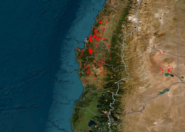 En el sitio web de la NASA se puede ver en tiempo real la emergencia que se vive en el sur de Chile, donde 39 focos simultáneos de incendios forestales mantienen en alerta al país.