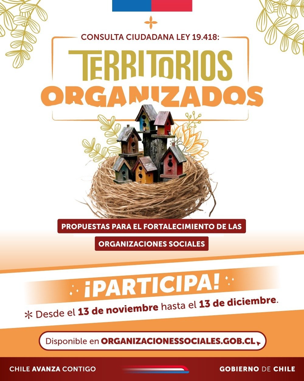 La División de Organizaciones Sociales (DOS) lanzó la Consulta Ciudadana “Territorios Organizados”, dirigida a las dirigencias sociales y la ciudadanía en general, y que se extenderá hasta el 13 de diciembre de 2025.