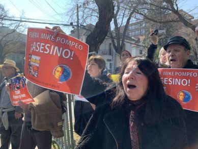 Según reportó la Radio de la U. de Chile, los manifestantes llegaron con pancartas, cantos y consignas, hasta la calle Bustos en Providencia, para prestar su apoyo a los habitantes de Venezuela que en la actualidad viven una dura crisis económica, recrudecida tras las medidas con que la administración de Trump busca presionar al Gobierno bolivariano.