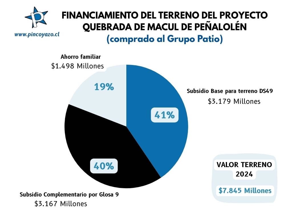 Para hacer posible la compra de este terreno, el SERVIU debió aumentar el subsidio a 72.227 UF ($2.853 millones) y las familias otras 11.758 UF ($464 millones). Eso significó que, en promedio, las 139 familias debieron aumentar su ahorro en $3,3 millones.