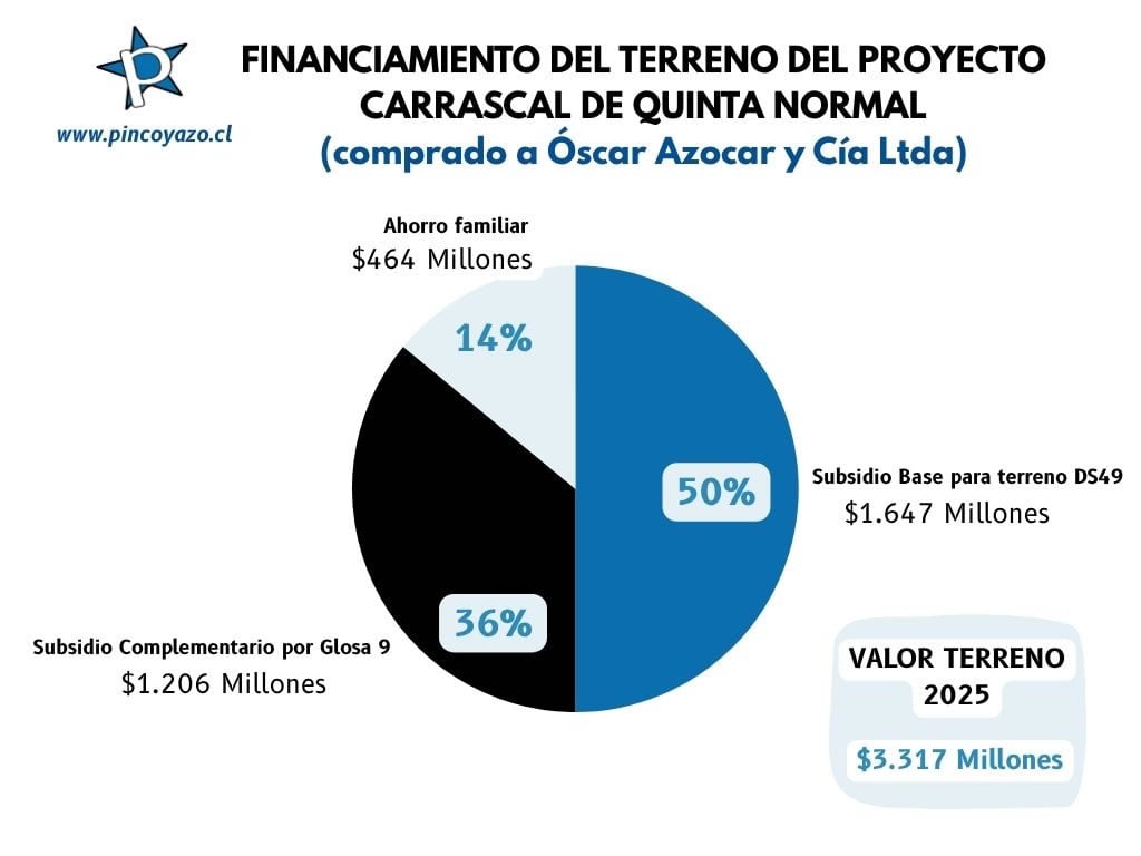 - En 2024, el SERVIU adquirió el terreno (2,6 hectáreas) por $7.845 millones de pesos para las 288 familias que componen el proyecto (8 UF por cada m2).