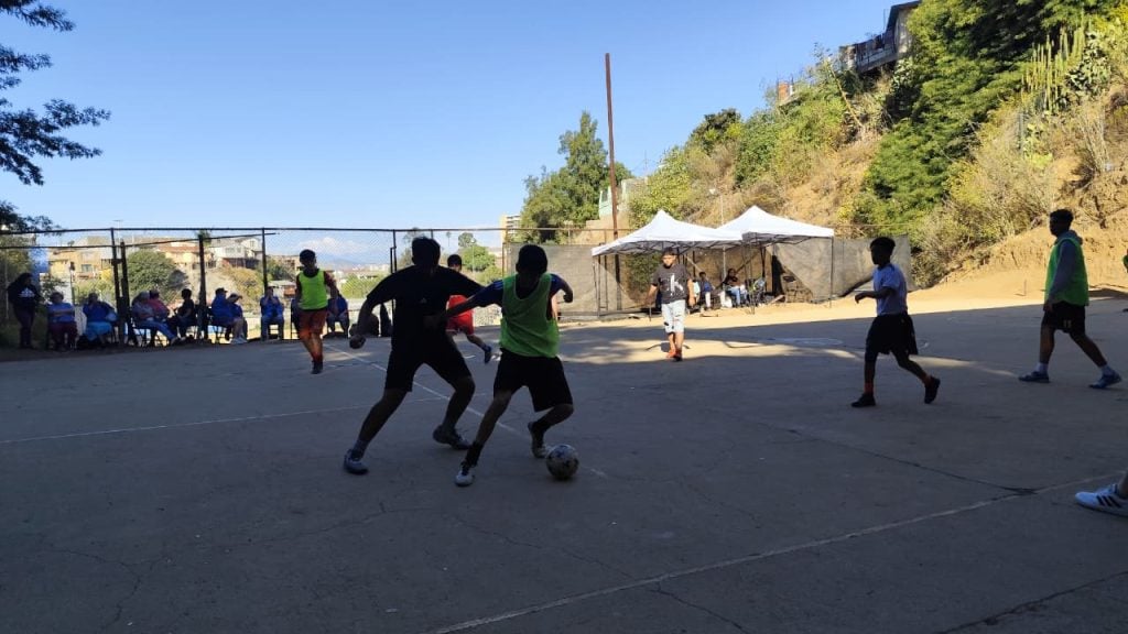 Niñas, niños, adolescentes, jóvenes y mayores, junto a organizaciones vivas de la Mesa Cordillerana, apreciaron la habilitación de los arcos combinados de fútbol y básquetbol junto a otras obras realizadas por el municipio, en coordinación con la comunidad del cerro.