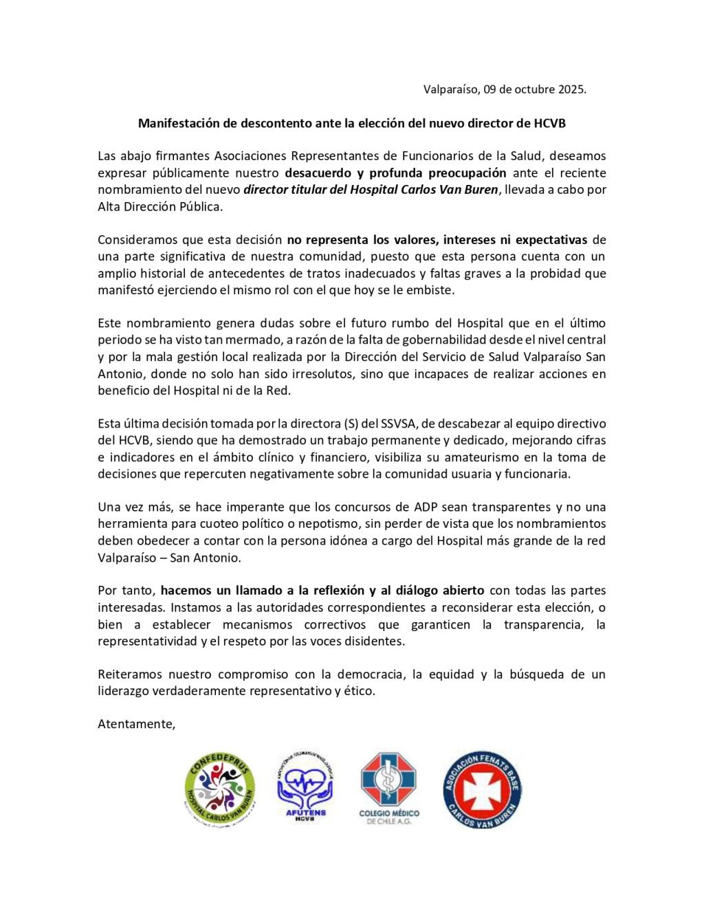 «Como Consejera Regional, me parece impresentable y una falta de respeto hacia las y los trabajadores de la salud y hacia quienes nos atendemos en el Hospital Carlos Van Buren, que le entreguen el cargo a alguien que hace años fue destituido, por demostrarse que había graves conflictos de interés», agregó Paula Rosso.