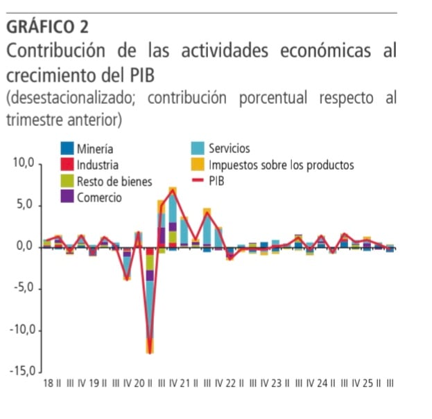 Esto se traduce en el peor registro trimestral desde abril-junio de 2024, cuando la actividad creció 1,2%.