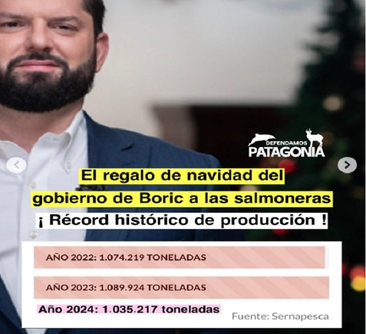 In a recent social media post coinciding with the holiday season, the campaign group Defend Patagonia highlighted a significant contradiction between the government’s environmental rhetoric and actual outcomes. Despite proclaiming to be «the first ecological government» in Chile, official data reveals that the salmon farming industry has achieved historically high production levels during this administration, directly impacting the Patagonia region.
