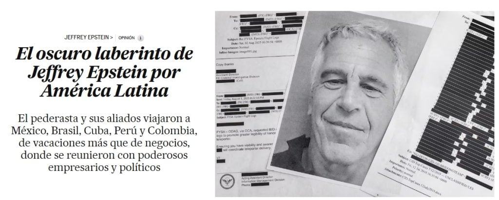 Amid the controversy, the newspaper El País of Colombia published an article titled: «The Dark Labyrinth of Jeffrey Epstein Through Latin America,» which reveals that the pedophile and his associates traveled through countries in the region such as Mexico, Brazil, Cuba, Peru, and Colombia, «on vacations rather than business, where they met powerful businessmen and politicians.»