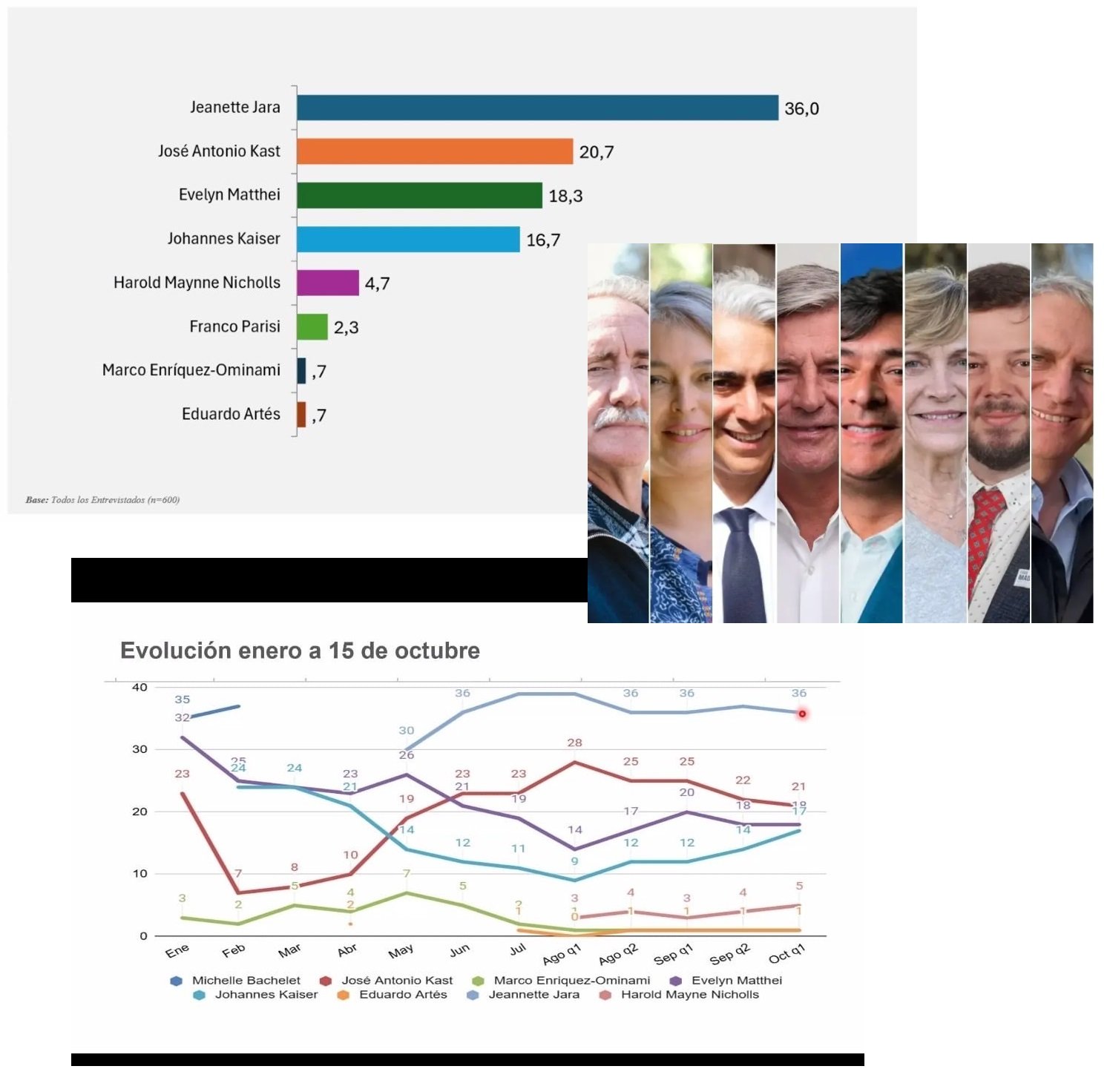 The latest release of the «La Cosa Nostra» poll, overseen by sociologist Alberto Mayol, has uncovered a polarized electoral landscape with fierce competition for the second spot. Based on responses from 600 surveyed individuals, the results position candidate Jeanette Jara in a leading position, providing her with a significant advantage over her rivals as she gears up for a potential runoff.