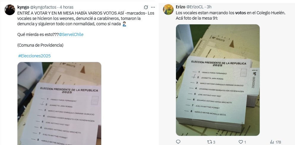 A disinformation campaign, primarily orchestrated by digital accounts linked to far-right sectors, has flooded social media with allegations of electoral fraud involving marked votes. This strategy echoes patterns observed in past electoral cycles and has been widely disseminated by supporters of candidate José Antonio Kast, casting unfounded doubts on the integrity of the electoral process.