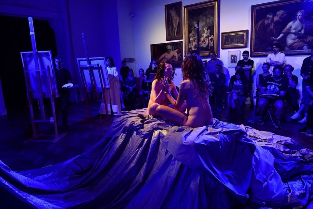 From October 16 to 19, between 10 AM and 6:30 PM, the public will have the opportunity to visit the installation where the performance took place in the northeast hall on the first floor of the National Museum of Fine Arts. A selection of works from the Museum’s Collection will be displayed there, including pieces by Ana Cortés, María Tupper, Henriette Petit, Raymond Monvoisin, and Pietro Negri, alongside drawings and audiovisual records produced during the performance, understood as remnants of the performative act.
