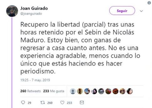 Otra vez el Gobierno de Venezuela fue señalado como un «régimen que atenta contra la libertad de expresión», cuando este miércoles 8 de mayo comenzó a circular la noticia sobre la supuesta detención del periodista español Joan Guirado.