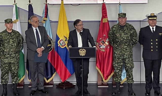 Las declaraciones del mandatario fueron hechas desde la sede del Ministerio de Defensa en la capital colombiana, donde Petro estuvo acompañado de los altos mandos de las Fuerzas Militares y de Policía.