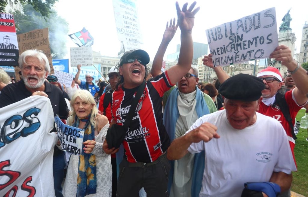 Una nueva protesta frente al Congreso de Argentina reunió ayer miércoles a jubilados, organizaciones sociales y colectivos vinculados a la discapacidad, quienes reclamaron por sus derechos y se manifestaron contra el Gobierno del presidente Javier Milei