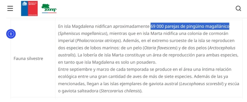 Este escenario choca frontalmente con la información pública disponible. En la página oficial de CONAF sobre el Monumento Natural Los Pingüinos, se señala que en Isla Magdalena «nidifican aproximadamente 69.000 parejas de pingüinos de Magallanes», una cifra que no se ha actualizado y que distorsiona gravemente la realidad de la colonia.