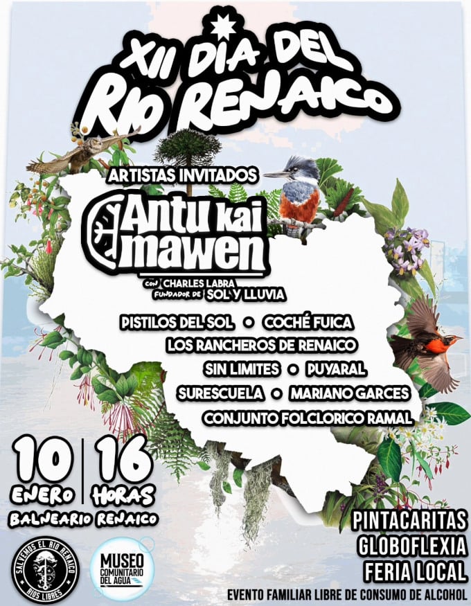 Este evento cobra especial relevancia al enmarcarse en el 12° aniversario de la agrupación «Salvemos el Río Renaico«, organización que ha liderado la protección del ecosistema fluvial y que hoy convoca a la comunidad a una celebración autogestionada y gratuita. La actividad busca generar conciencia sobre el cuidado del humedal y el río, pilares fundamentales de la vida en la zona.