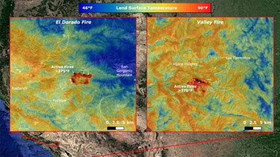 La NASA midió las temperaturas de los incendios forestales que azotan el estado estadounidense de California con el uso de su instrumento ECOSTRESS (experimento de radiómetro térmico espacial ECOsystem), instalado en la Estación Espacial Internacional. Este 6 de septiembre, se tomaron imágenes de los incendios activos en toda California.