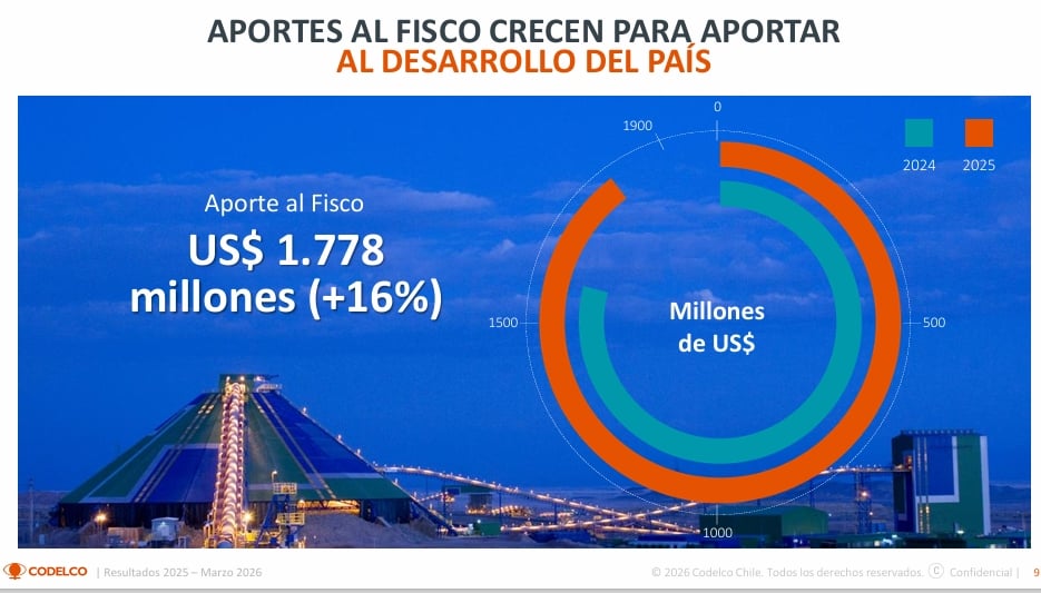 Durante el ejercicio 2025, la minera estatal reportó un incremento significativo en sus contribuciones al Fisco, alcanzando la cifra de US$ 1.778 millones, un monto, que supera en un 16% lo entregado el año anterior.