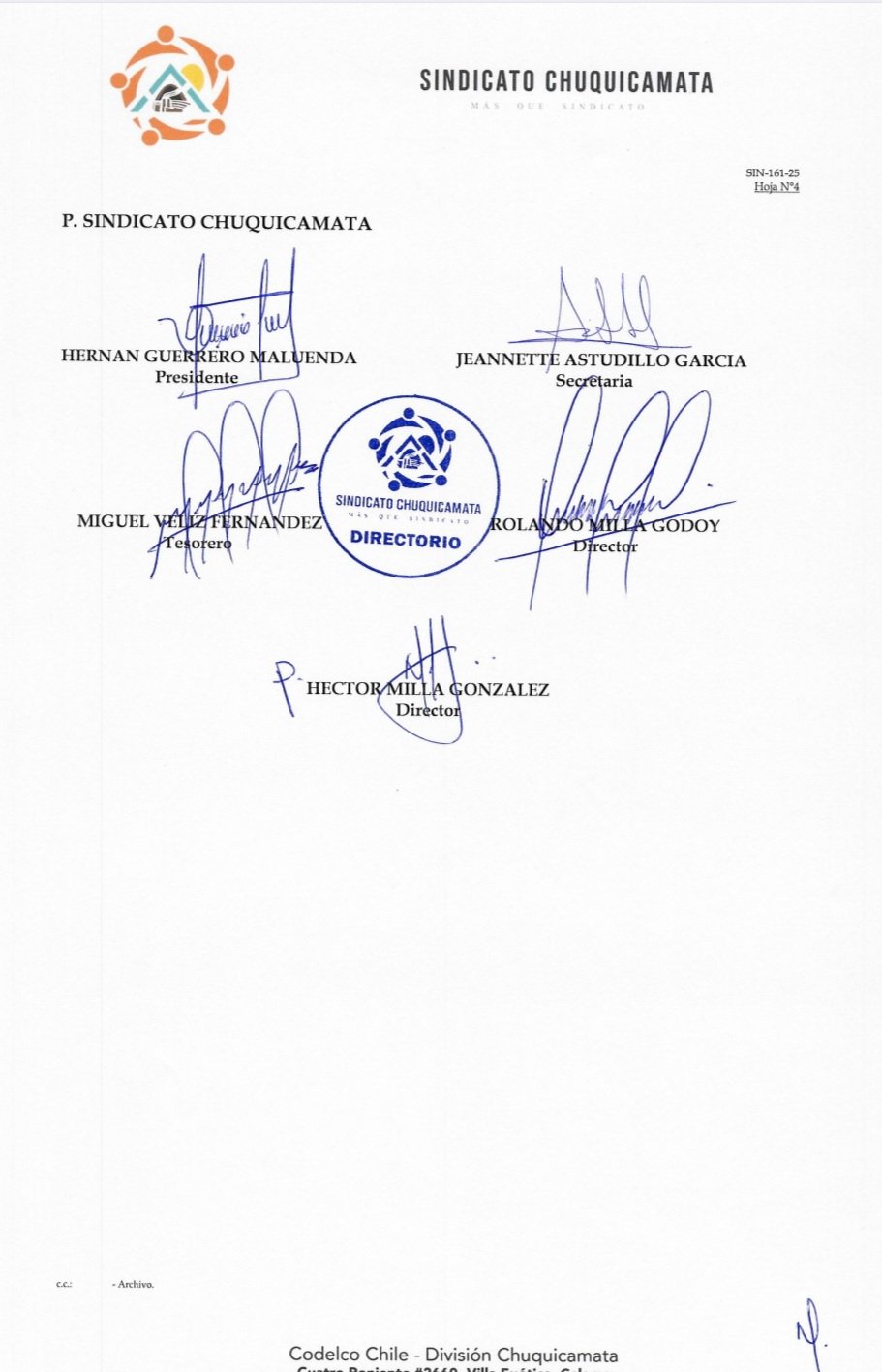 A continuación, la misiva enviada por el Sindicato Chuquicamata al presidente de la FTC: