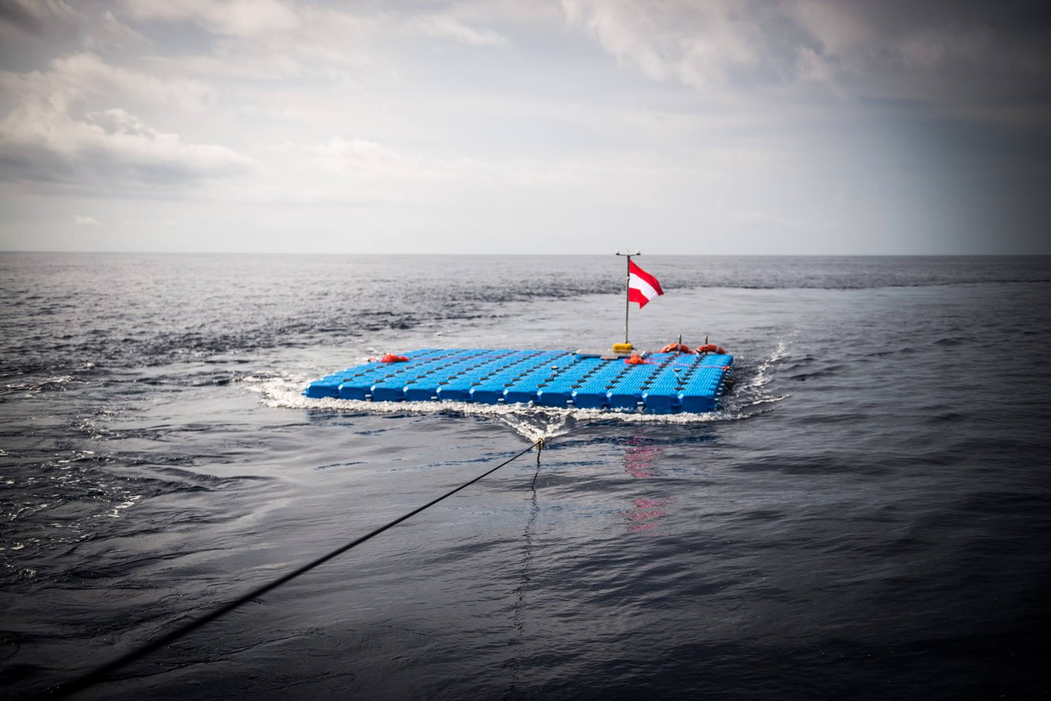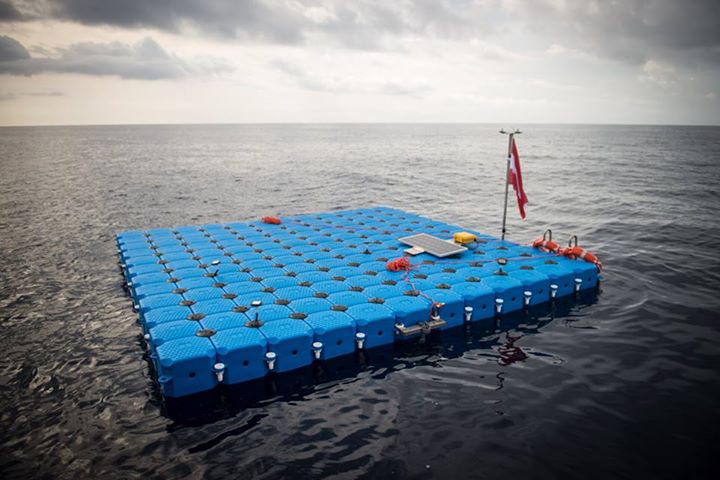 La plataforma está amarrada en una de las rutas de huida que utilizan los refugiados y está equipada con luz de posición, un panel solar, alimentos, radio y amarres.