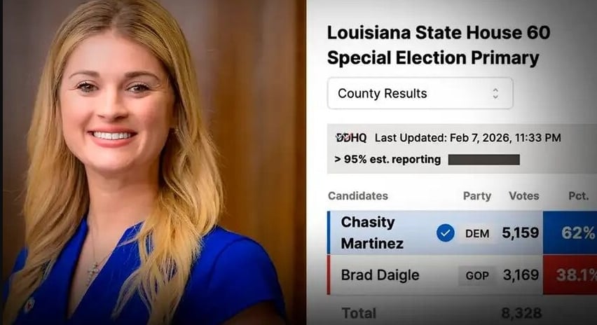 En un resultado que representa un severo golpe al «trumpismo», la candidata demócrata Chasity Martínez obtuvo una victoria contundente, con el 62% de los votos, en una elección especial celebrada el pasado 7 de febrero en el Distrito 60 de la Cámara de Representantes de Luisiana. Su rival republicano, Brad Daigle, se quedó con el 38% de las papeletas, según los escrutinios completos —aunque aún pendientes de certificación oficial— difundidos por la Secretaría de Estado de Luisiana.
