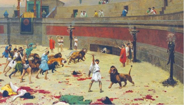 ¡A los leones! El más utilizado método de ejecución de la Antigua Roma. La lucha con bestias en una arena de combate tenía dos modalidades, era o bien voluntaria para probar valentía y recibir reconocimiento, o bien utilizada como escarnio público y pena de muerte.