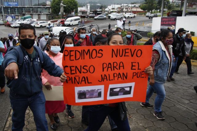 En las inmediaciones del recinto al que arribará AMLO permanecen lugareños de la Sierra Norte desde ayer, día que estaba prevista su visita a Puebla; personal del gobierno federal les pidieron sus documentos para encausar sus demandas.