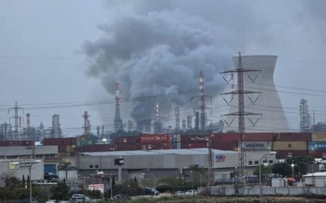 La refinería suministra aproximadamente entre el 50 % y el 60 % del combustible que consume Israel, Videos que circulan en las redes muestran columnas de humo elevándose desde las instalaciones.