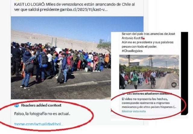 A dos semanas del balotaje entre José Antonio Kast y Jeannette Jara, la ultraderecha ha intensificado una ofensiva comunicacional basada en desinformación migratoria. Cuentas en redes sociales ligadas a este sector político, una vez más, expusieron fotos falsas, videos manipulados y testimonios repetidos usados para instalar un clima político favorable al discurso “expulsivo” y populista del candidato del Partido Republicano.