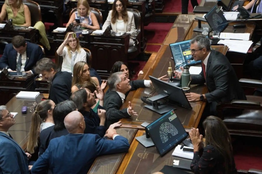 La sesión arrancó con tensión y siguió con fuego cruzado. Unión por la Patria intentó una jugada para devolver el proyecto a comisión y hacer caer el debate, pero el oficialismo sostuvo el trámite. Entrada la noche, el bloque peronista intentó levantar la sesión cuando el recinto estaba prácticamente vacío. El presidente de la Cámara, Martín Menem, le dio la palabra a otra diputada para ganar tiempo y permitir que los libertarios recompusieran bancas y evitaran el derrumbe del quórum. Eso desató el enojo opositor y el rodeo del estrado.