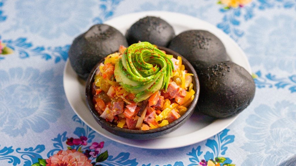 Para comenzar la experiencia me dejé llevar por lo sugerido, el famoso Causeo Minero, una pichanga con pickles, arrollado de huaso, tomate, ají oro y palta, acompañado de mini pan brioche de color negro, pero ojo que hay un par de opciones más, como La Mano que Aprieta (3 empanadas fritas rellenas de un suave pino de prietas y nueces) o el Consomé con Huevo (Consomé del día con huevo pochado y crutones de pan negro).