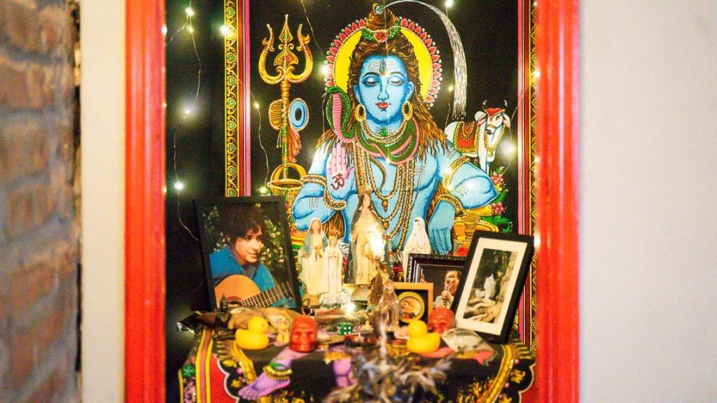 Mientras esperaba mi orden, obviamente me dediqué a observar el lugar. Una casona esquina, de color rojo o burdeo, con un salón principal en el primer nivel que debe albergar unas 40 personas y un segundo piso que, a vuelo de pájaro, permite el deleite de 40 comensales más. Muros de ladrillos de la construcción original, lámparas con luces tenues, uno que otro adornillo, cuadros y un altar tipo animita con distintas virgencitas, santos, amuletos y fotografías de personajes icónicos y recordados como el gran Tommy Rey y Cecilia, la incomparable.