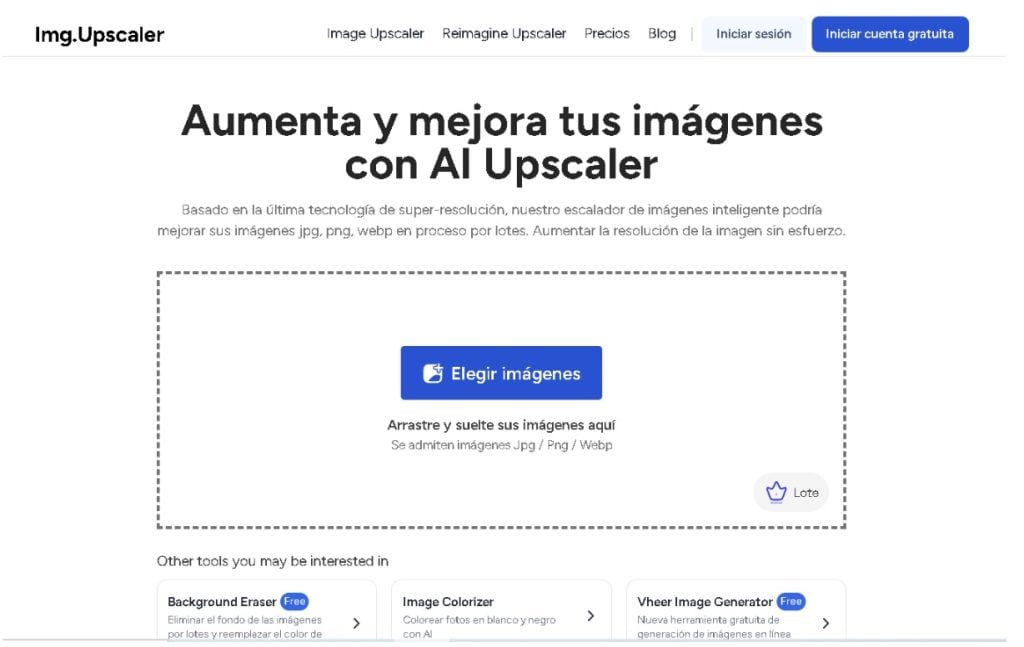 Imgupscaler es otra herramienta en línea fácil de usar que te permite ampliar imágenes hasta un 400 % sin perder calidad. Está pensada para quienes buscan mejoras rápidas, especialmente para fotos de redes sociales, imágenes de productos de comercio electrónico o fotos antiguas de baja resolución. Su interfaz es limpia y fácil de entender, por lo que puedes subir y mejorar tu imagen en cuestión de segundos.