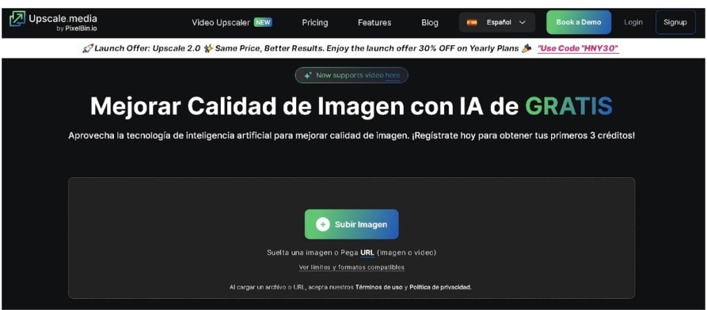 Upscale.media es un escalador de imágenes muy fácil de usar que ofrece resultados rápidos con una curva de aprendizaje casi inexistente. Puedes ampliar imágenes 2×, 4× o incluso 8× manteniendo los detalles limpios y equilibrados. Funciona bien para uso diario, ya sea que quieras mejorar una selfie, perfeccionar una foto de producto o optimizar imágenes para tu sitio web o redes sociales.