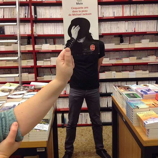 los empelados de librería juegan ingeniosamente con la foto de portada de los libros y sus rostros
